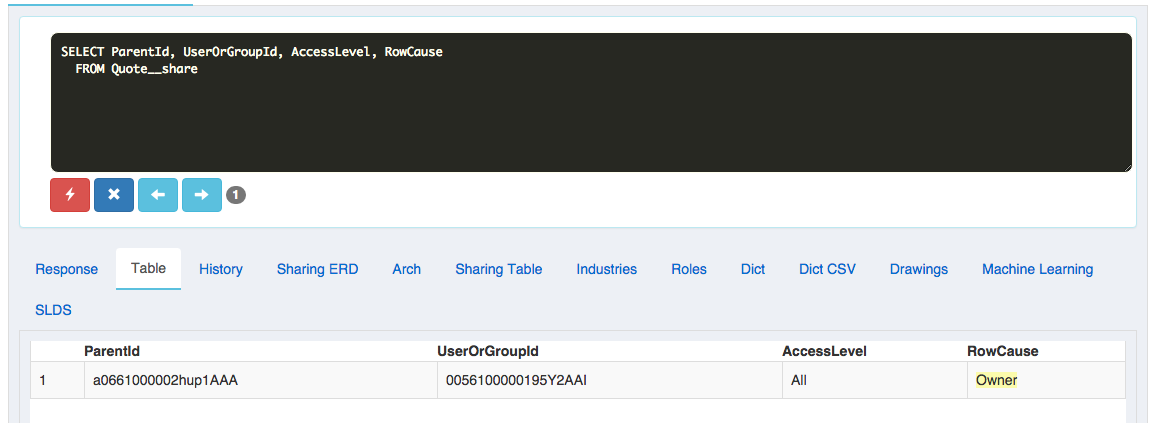You can see new tuple (record) with RowCase: Quote_Write_Sharing__c and AccessLevel: Edit